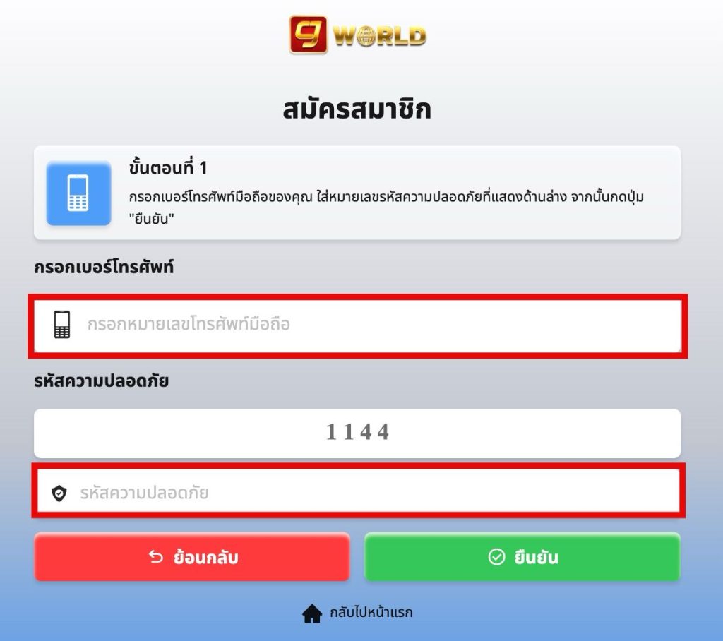 กรอกหมายเลขโทรศัพท์ และ รหัสความปลอดภัย แล้วกด หน้าถัดไป