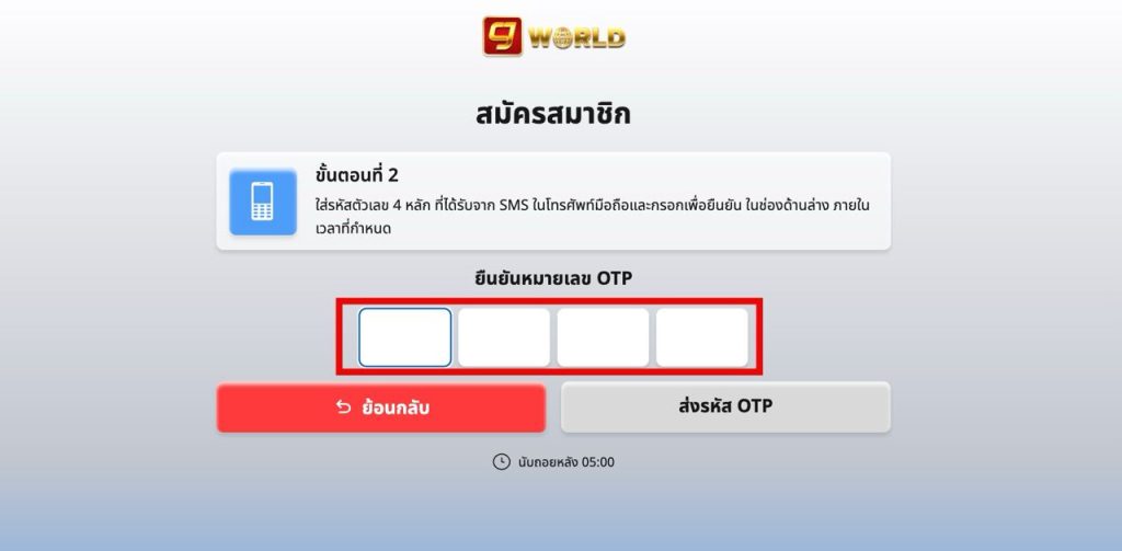 รอรับ รหัส OTP จากมือถือของท่าน แล้วกรอกลงช่อง ยืนยันหมายเลข OTP (ถ้าไม่ได้รับ SMS สามารถกด ส่งรหัสยืนยันใหม่ได้)